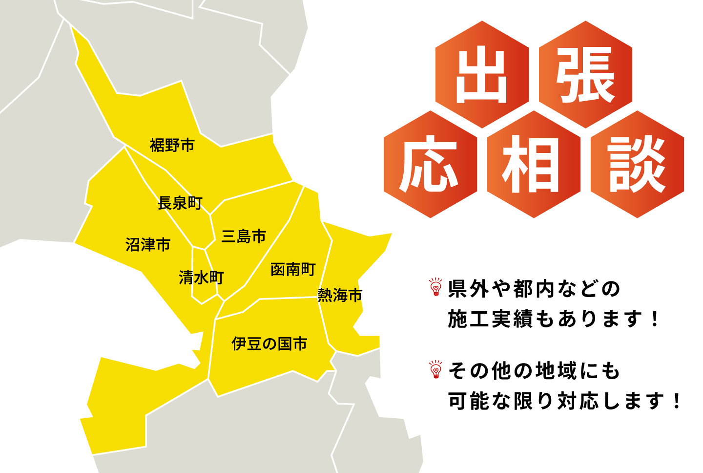 静岡県東部を中心に、屋外広告業、店舗デザイン、内外装リフォーム、便利屋、ハウスクリーニング等。 多能工としてあらゆるニーズに応えます。 まずはご相談ください。 迅速にお見積もりをし、作業依頼を受けてから作業いたしますのでご安心ください。 いかなるご依頼も可能な限り対応します。